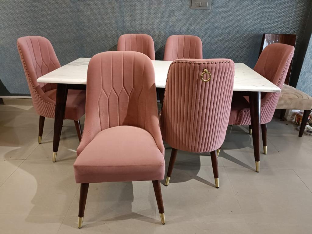 A luxurious marble dining table that blends timeless elegance with modern sophistication, featuring a polished stone surface perfect for refined dining experiences and upscale interiors.