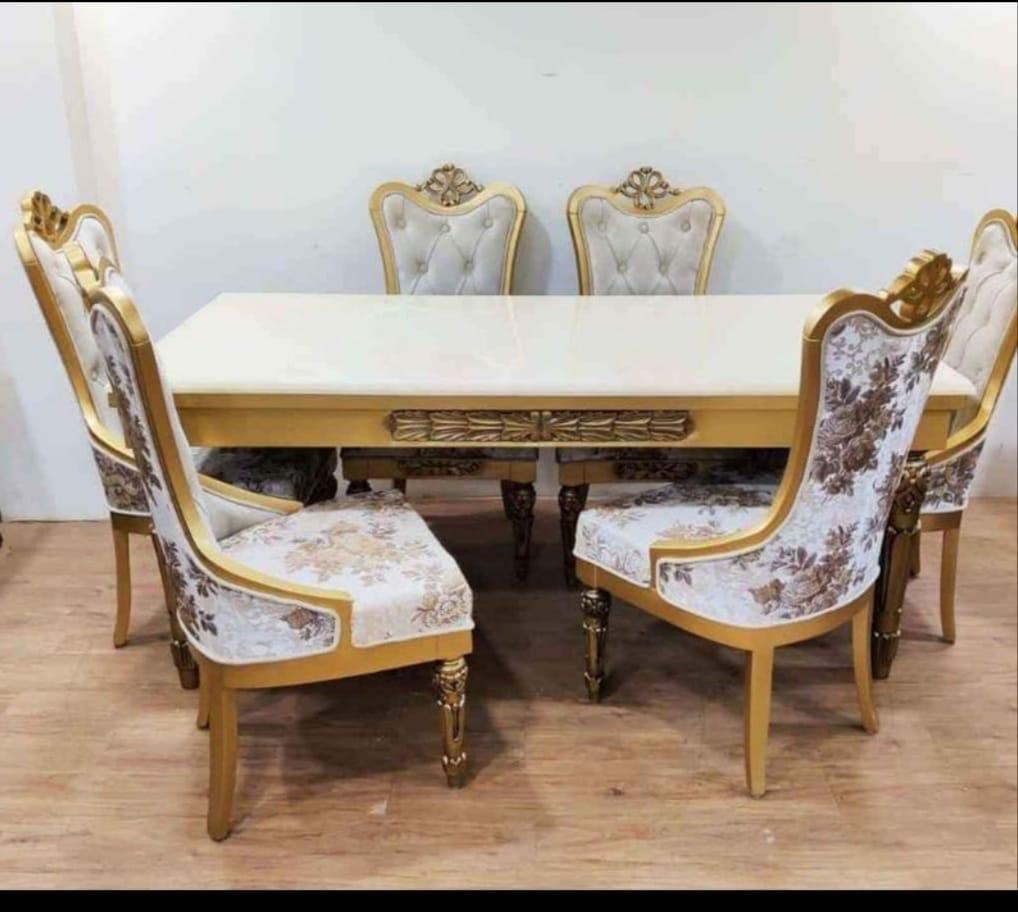 A luxurious marble dining table that blends timeless elegance with modern sophistication, featuring a polished stone surface...