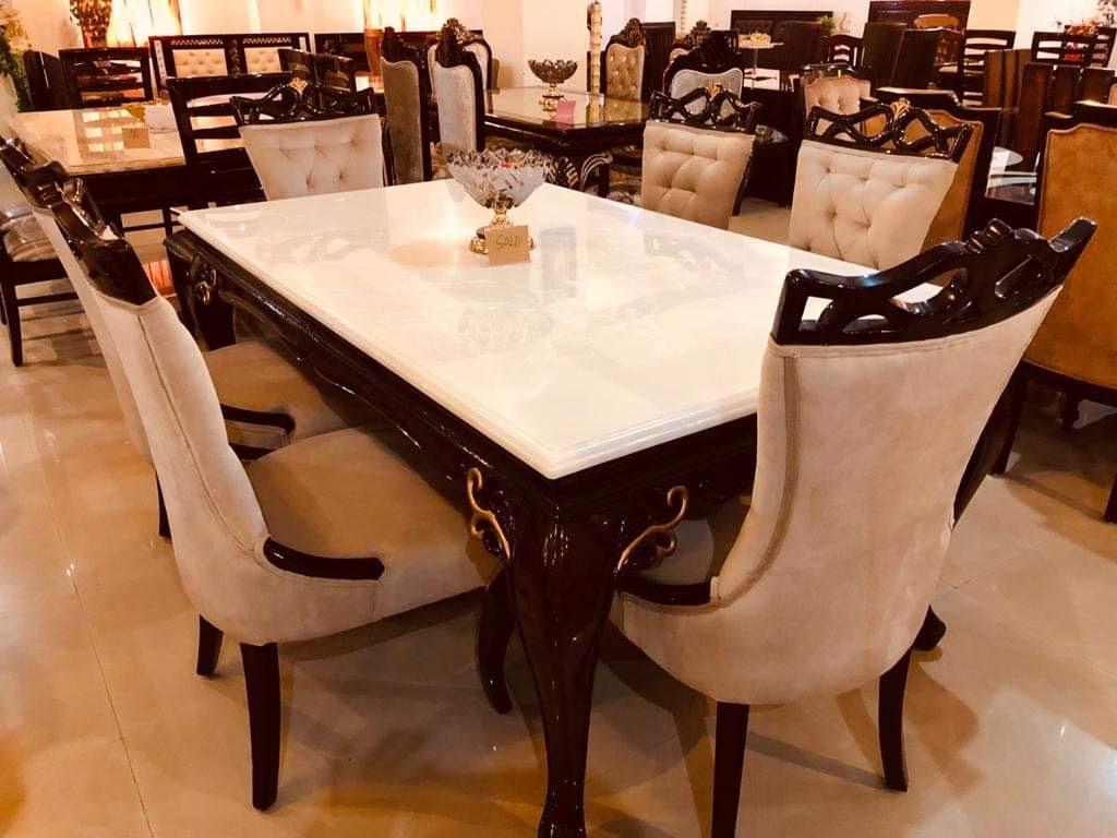 A luxurious marble dining table that blends timeless elegance with modern sophistication, featuring a polished stone surface perfect for refined dining experiences and upscale interiors.